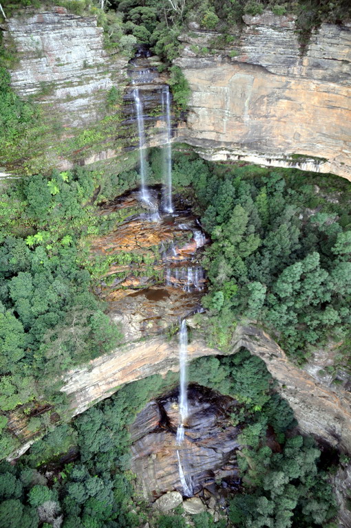 From the top a phenomenal view to the remarkable “three sisters” rock formation and a cable ride trip across the valley and water falls completed the scenic impression from the top.